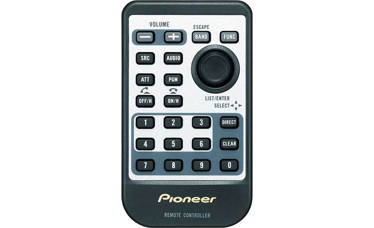The CD-R510 card remote control is an add-on or replacement remote for Pioneer CD receivers. It controls source selection, audio adjustments, fast forward, rewind, track up/down, volume, power, and phone answer/hang-up functions (for Bluetooth® enabled units). The numeric keypad is used for direct track or preset selection or to dial a telephone number (for Bluetooth® enabled units).