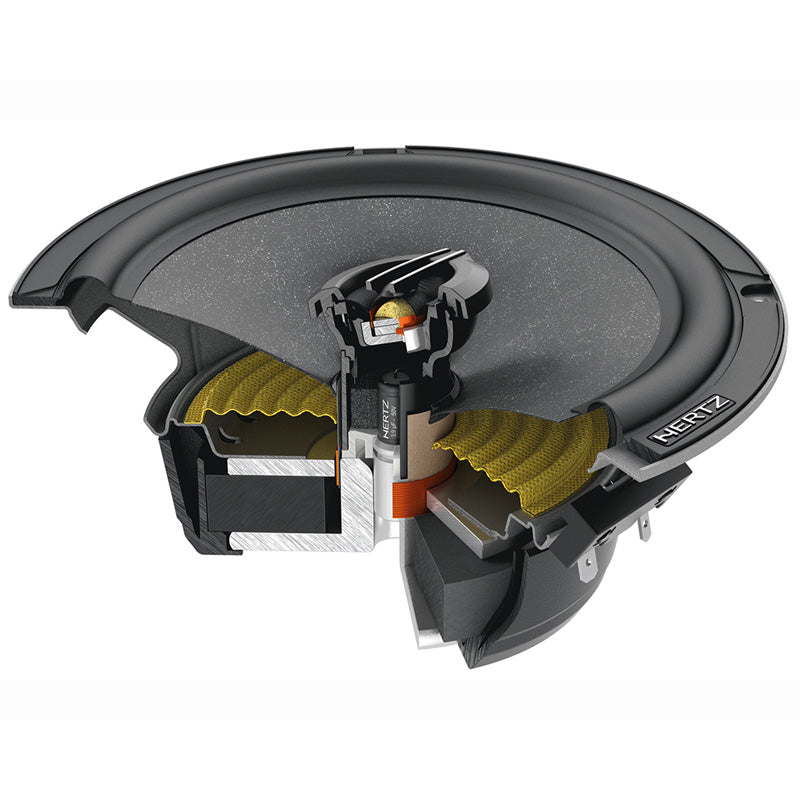 Coaxial loudspeakers represent a major design challenge due to the critical nature of their acoustic output, being installed in an OEM placement often unfavorable to reproduction. For this reason, in order to achieve high performance, a great engineering effort was put into place, promptly addressed by our R&D team. The Cento two-way coaxials CX 165 features the new 24 mm (0.9 in.) Tetolon® dome tweeter that delivers a more musical and detailed sound compared to the more traditional plastic materials. The dispersion has been optimized for off-axis listening. The SPP-M cone (Semi Pressed Paper-Mica) ensuring superior acoustic and damping characteristics.