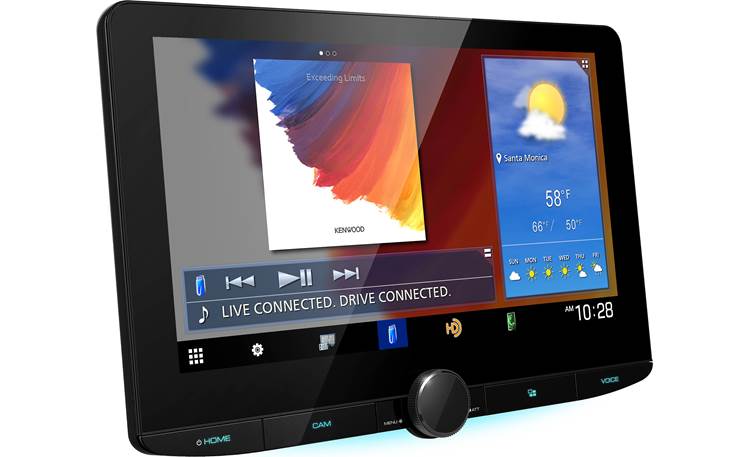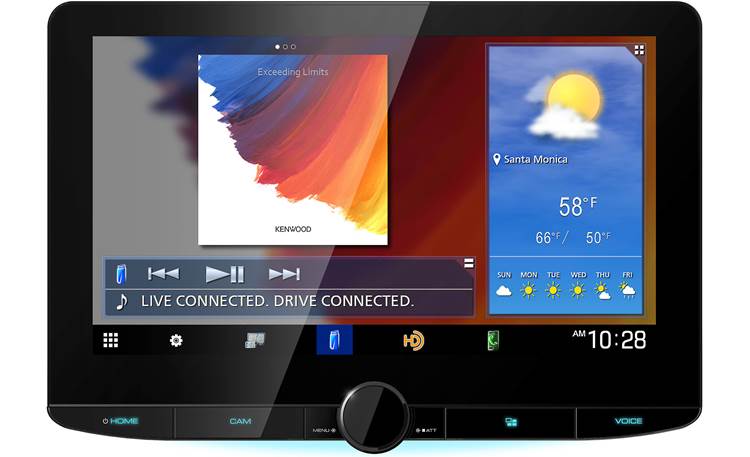 The DMX1037S has a big screen for crisp, detailed video, but you can adjust its layout so it looks (and works) the way you like. Movable widgets let you bring the important stuff to the forefront, such as music sources, navigation, and weather. By the way, this Kenwood includes an INRIX weather widget with a free 5-year subscription — super handy for long trips. Kenwood's free Portal app lets you transfer photos from your smartphone for slide shows and personal backgrounds for your in-dash media hub.