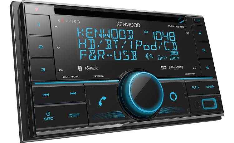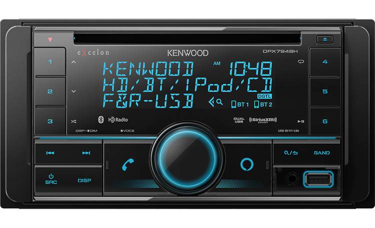 You can play and charge your iPhone or check out a thumb drive filled with high-res FLAC and WAV files through this receiver's front and rear USB ports. Android™ users, you can control and play music using Bluetooth. Kenwood rounds out the connectivity with a front aux input for a portable music player. The DPX794BH gives you all kinds of radio options, with controls for Spotify and Pandora, along with an option for SiriusXM (satellite radio tuner and subscription also required).