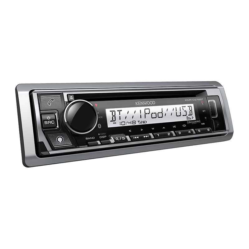 The KMR-D378BT offers up controls over Spotify® and Pandora® streaming music services. And if you're a satellite radio fan, add a SiriusXM tuner (subscription required) to this Kenwood and enjoy music, sports, and talk, even when you're miles offshore. You can also play and charge your iPhone® or check out a USB drive filled with high-res FLAC files through the front USB port. Android™ users, you can control and play music using Bluetooth. Kenwood rounds out the connectivity with a front aux input for a portable music player. Still dig CDs and AM/FM radio? No problem — this Kenwood can handle that, too.