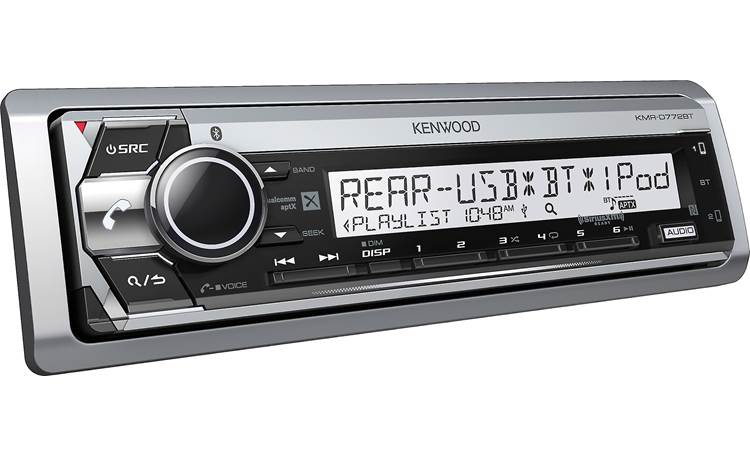 Kenwood's KMR-D772BT CD receiver makes it so easy to use your Apple® or Android™ smartphone on the water. This premium marine radio lets you check out playlists on Pandora, iHeartRadio, and Spotify, or browse through your own music collection. You can also use Kenwood's Remote App to control this radio's playback and sound settings with your phone.