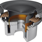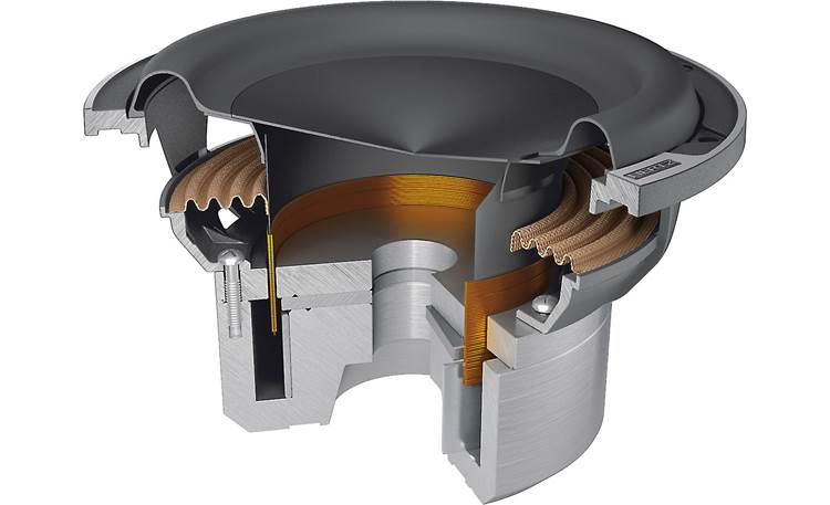 The ML 2000.3 features the technically advanced V-cone®, which keeps its shape even at high volume levels to minimize distortion. The pressed pulp of the cone is combined with mineral powders for additional rigidity, while the rubber surround keeps things under control. The sub's aluminum alloy frame is designed to minimize resonance so it'll produce rich, clear bass while handling tremendous amounts of power.