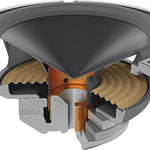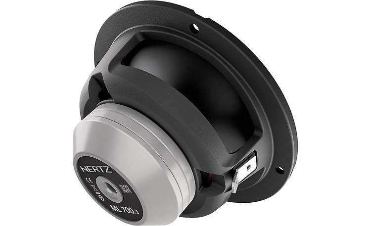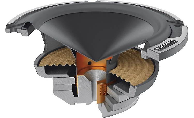 An aluminum alloy speaker basket with built-in venting provides a solid, smart foundation for impressive performance from this 3" woofer. Hertz employs a "Boundary Free" rubber surround with its enhanced pressed pulp and cotton fiber cone to move more air with accuracy. The V-cone design improves dispersion and helps provide lows you can feel. Superior damping is also key to the sound of these speakers — minimized resonance reduces distortion for a truer-to-life sound driven by up to 50 watts RMS of power.