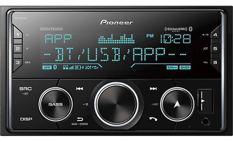 Pioneer's MVH-S622BS digital media receiver delivers in a big way on features and has the looks to revitalize your dash. A sleek interface and a bold display put the fun back into the car stereo experience. And it can do so much — crank up some music from your iPhone® or Android™ phone, play FLAC files from a USB thumb drive, or tune into Spotify® or Pandora® to enjoy your favorite playlists. You also get SiriusXM compatibility, built-in Bluetooth®, Siri Eyes Free functionality, AM/FM radio, and a built-in amplifier. Plus, with multi-color illumination, you can match your display to your vehicle's interior lighting.
