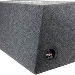 The rugged enclosure is built from 5/8" MDF with a 3/4" thick internal baffle to give the subs solid support. The box's slant-back design suppresses standing waves which can interfere with bass response, and allows it to fit neatly behind the rear seat of an SUV. Rounded port corners reduce port noise and airflow resistance. The P-XW1221DHP can be used in front-facing, rear-facing, or down-firing applications. Steel-mesh grilles protect the speakers from accidental damage.