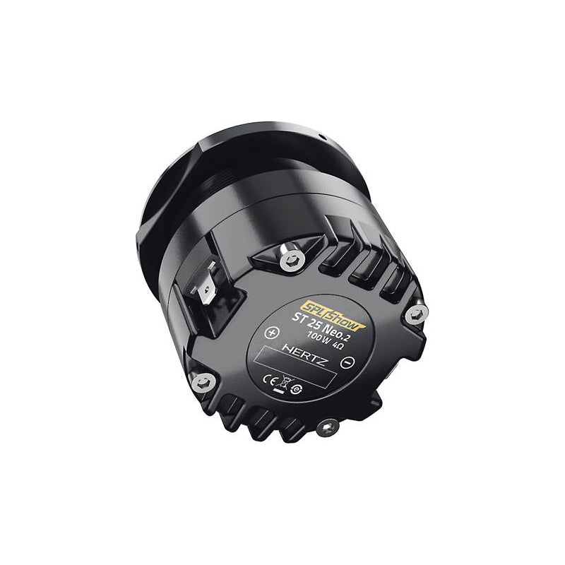 NEO line bullet tweeters are a totally new project, lighter and more compact compared to the previous ST 25 and with superior performance thanks to the use of Neodymium N38 H for the motor units and a FEM (Finite Element Method) optimized driver/horn design. The “Kit” version, ST 25K Neo features metallic mesh grille and inline crossover filter included