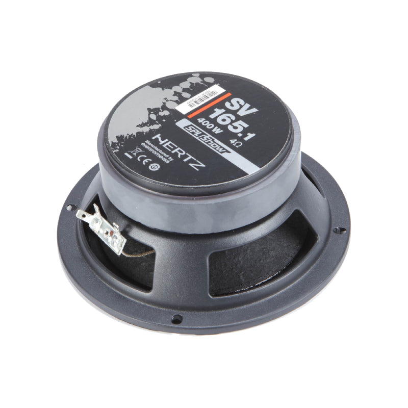 The SV 165.1 car audio midrange can be employed to build systems with tremendous impact. Like the SX subwoofers, the SV 165.1 features a solid, robust structure and, like all the other SPL Show components, it employs a copper voice coil wound on a two-layer KSV former, for unheard-of thermal and mechanical capability also in extreme circumstances. The cone features a water repellent pressed paper membrane and paper dust caps, both robust and light weight, as well as double-wave damped fabric surrounds to ensure linearity even under extreme conditions, contributing to high SPL scores.