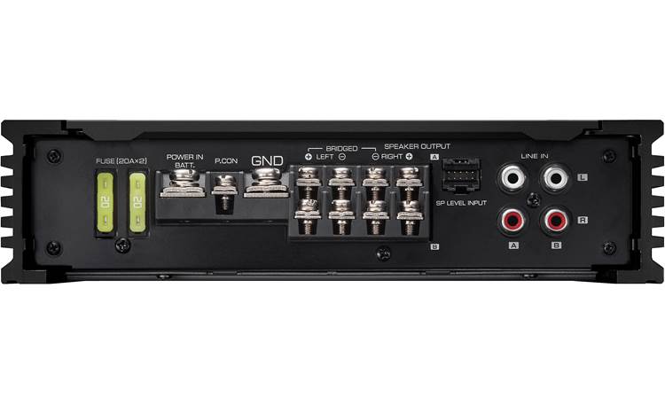 Class D technology ensures that this compact amp will run cool and perform reliably. Kenwood divided the amp's internal circuitry — analog, digital, and power supply — onto separate, non-overlapping circuit boards for improved overall sound quality. The X302-4 accepts input signals via RCA cables from an aftermarket receiver or by way of your vehicle's speaker wiring, so it'll work with almost any mobile audio system. If you do use the speaker-level inputs, the amp can sense the signal and turn itself on, so you won't need to run a separate remote turn-on lead to the receiver or fuse box.