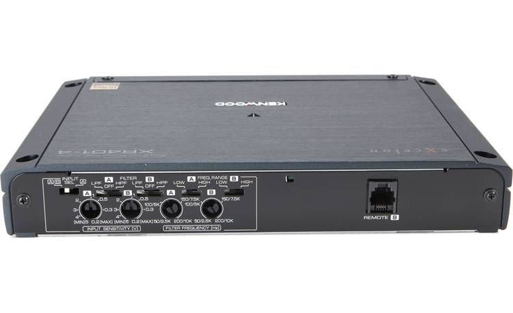 Clean power can transform a mediocre sound system into a great one. Kenwood's Excelon Reference Series XR401-4 4-channel amplifier will add clarity and punch to your sound, as it powers each of your front and rear speakers with 75 watts RMS. If you're adding bass first, you can use the amp in 2-channel mode to drive a couple of subwoofers with up to 200 watts RMS each. Then later you can switch the amp over to your main speakers when you get a sub amp. The XR401-4 can fit in many different places in your car because of its incredibly low profile — it's under 1-1/2" tall.
